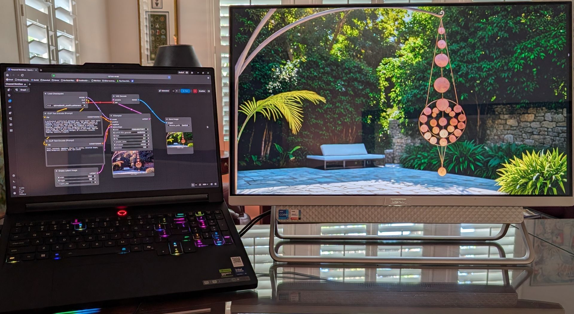 My process begins in a high-performance digital environment powered by NVIDIA RTX architecture. Utilizing Stable Diffusion and custom ComfyUI node-based workflows, I architect the geometry and kinetic balance of each piece. This phase ensures that the final physical sculpture—though birthed in fire—is rooted in deliberate, engineered intent.